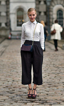 O camasa scrobita, perfect croita, si o pereche de culottes sunt combinatia perfecta pentru a merge sa ii ceri sefului o marire de salariu. Atunci cand vrei sa pasesti inaintea tendintelor, joaca-te cu volumele si intovaraseste modelul de culottes cu un top asimetric, cu taieturi inegale. Fii atenta insa, acest look nu ti se potriveste, daca esti miniona!