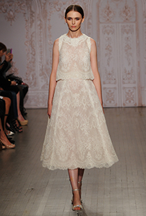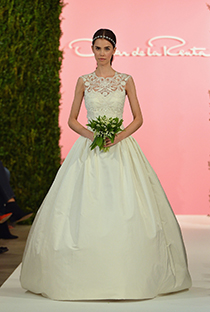Marchesa ne fura inimile cu o rochie de mireasa de vara de o simplitate atat de cuceritoare, in timp ce Oscar de la Renta mizeaza pe inocenta cu o rochie de printesa, cu detalii de dantela care redau farmecul etern al candorii.