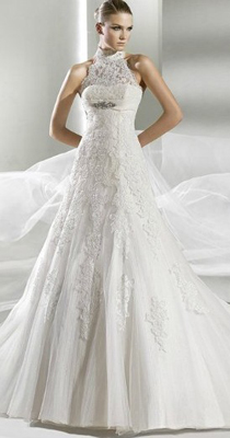 Iti plac tinutele excentrice si vrei sa iesi in evidenta? Modelele de rochii de mireasa pe gat sunt ideale pentru miresele care vor sa iasa din tiparele clasice: dantela senzuala, trena impresionanta si detaliile pretioase aplicate pe rochia de mireasa sunt artificiile de croi care iti vor garanta o aparitie demna de invidiat. Acest model este recomandat mireselor care au un gat subtire si un bust mic.