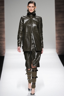 Si pentru ca am adus in atentie designul futurist, trebuie sa adaugam in lista noastra si gecile din piele cu un desig neobisnuit. Designerii ne propun haine din piele decupate, sub forma de poncho, sau modele hibrid - jumatate bolero, jumatate vesta.