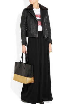 Asorteaza geaca din piele cu o geanta supradimensionata.