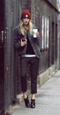Pantalonii tigareta sunt indispensabili! Alaturi de o geaca bomber perfect croita pe corp, ei iti vor contura un stil serios, compatibil cu spatiul biroului, dar pe care il poti adapta si unei cine intre prieteni in oras sau unei intalniri romantice. Pastreaza insa cromatica neutra a outfitului!