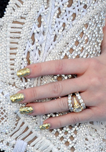 Unele dintre cele mai populare lacuri de unghii glitter, raman cele clasice in nuante de auriu si argintiu. Insa fara indoiala, vedetele prefera oja glitter aurie, care odata aplicata pe unghii, asigura o manichiura eleganta, care poate pune perfect in valoare o tinuta sofisticata neagra sau all-white.