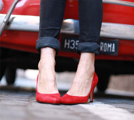 Pantofii rosii cu toc reprezinta pata de culoare necesara unei tinute all-black, completand in acelasi timp perfect un outfit "all-red" extravagant. Bineinteles, acestia pot fi purtati si alaturi de alte piese in nuante vibrante (nu mai mult de 2) pentru a crea un efect de color-blocking. Ai nevoie doar de o doza de curaj si de multa imaginatie!
