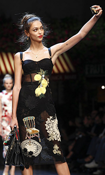 Unele dintre cele mai frumoase (desi un pic previzibile) rochii au fost din nou realizate prin maiestria lui Domenico Dolce si Stefano Gabbana! Modelele au fost si ele cucerite de imaginatia creatorilor, pentru ca nu s-au abtinut sa imortalizeze in selfie-uri tinutele decorate cu pompoane, ciucuri, broderii, infatisand peisaje din splendida Italie.