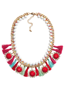 Poarta un colier cu ciucuri, colorat, la o tinuta monocromatica pentru a da o pata de culoare outfitului, dar si pentru a iesi in evidenta intr-un mod placut. Prinde-ti parul intr-o coada de cal si pune-ti in valoare trasaturile fetei cu o pereche de cercei cu ciucuri, care iti vor completa perfect lookul. In cazul in care iti doresti sa porti astfel de bijuterii la o tinuta de seara, alege un colier lung cu ciucuri, intr-o culoare discreta, care sa confere eleganta outfitului tau.