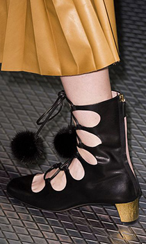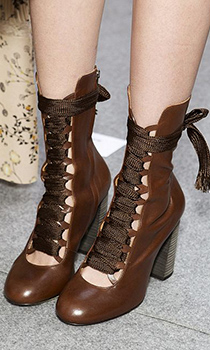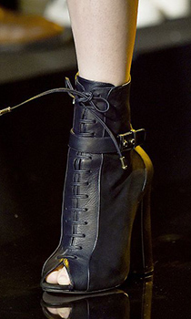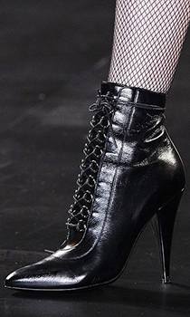 Elie Saab nu se poate desparti de botinele model „peep toe", cu degetele la vedere, care iti amintesc ca a fost, candva, vara. Saint Laurent mizeaza insa pe sexualitatea absoluta, confectionand botinele sale cu siret din piele lucioasa, indrazneata si sigura pe ea.