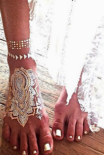 Tatuajele metalice sunt un hit peste Ocean, acolo unde vedete ca Beyonce sau Katie Holmes le-au ales pentru a-si condimenta look-ul de plaja. Intr-o epoca in care vizibilitatea si popularitatea in mediul online sunt repere ale existentei noastre sociale, tatuajele metalice te individualizeaza si vor fi sarea si piperul wall-ului sau profilului tau de Instagram.