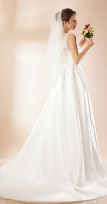 Rochia de mireasa Claudette este realizata din materiale alese precum tafta satinata si broderie accesorizata manual. Stilul A-line si buzunarele ascunse scot in evidenta talia, conferind o nota feminina si originala tinutei. Pret: 3100 lei
