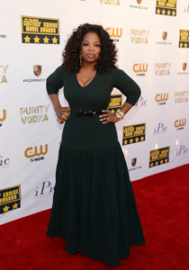 Oprah Winfrey stie ca o curea fantezie subtiaza silueta. Vedeta a optat pentru o rochie in clos si si-a marcat talia discret cu o curea subtire si eleganta.