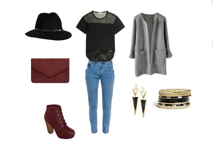 O alta tinuta pe care o poti aborda in aceasta toamna este una alcatuita din jeans cu talie inalta, un top cu insertii transparente si un cardigan supradimensionat. Vei iesi cu siguranta din anonimat daca vei accesoriza tinuta cu o palarie cu boruri largi, un plic si o pereche de ghete marsala, nuanta vedeta a anului 2015, potrivita in special pentru sezonul rece. Nu uita de accesoriile cu combinatie negru-auriu, avand in vedere ca, intr-adevar, ele ofera un aer de diva.