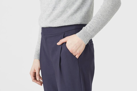 Everlane a creat o estetica sofisticata in toate piesele lansate pana acum, iar pantalonii nu puteau fi diferiti. Pantalonii slim si cei largi, disponibili in varianta neagra si navy la preturi cuprinse intre 98 si 120 de dolari, reusesc sa ilustreze acea calitate greu de identificat, dar extrem de stylish care transforma un outfit simplu in unul remarcabil: renuntand la ornamente inutile si concentrandu-se asupra unui croi impecabil, au facut ca functionalitatea sa arate mai sofisticat ca niciodata. Liniile curate, simplitatea si culorile inchise imita aerul costisitor al pieselor create de marii designeri la o parte infima din pret, asa ca delirul creat in jurul pantalonilor Everlane se justifica din plin.