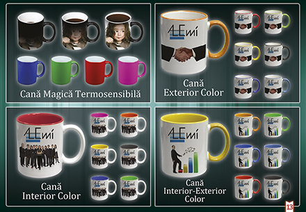 Daca ideea unei cani personalizate ti se pare o solutie comoda doar pentru ca este un obiect util si functional, gandeste-te din nou: ai posibilitati aproape nelimitate pentru a individualiza cani fosforescente, colorate in interior sau termosensibile cu design-uri unice, incat utila cana va capata o personalitate proprie si o incarcatura simbolica deosebita.
