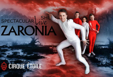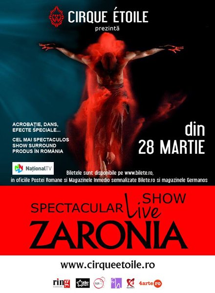 „Radiografie vestimentara" a personajelor, costumele pentru elementele de acrobatie create de Wilhelmina Arz respecta fidel linia corpului (second skin). Din distributia Zaronia fac parte 30 de acrobati si dansatori din Romania si Republica Moldova, castigatori de concursuri internationale si gimnasti de performanta. Momentul de maxima tensiune al show-ului este trambulina, unde acrobatii ignora legile gravitatiei si urca spre infinit, combinand dublu-salturi cu intoarcere cu suruburi, interschimband axele orizontale si verticale. Se adauga acrobatii la sol, acrobatii aeriene la 5 metri deasupra scenei, numere de cerc absolut fascinante si o coregrafie ce combina elemente de street-dance cu dans contemporan.