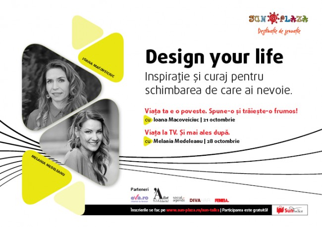 În octombrie, Ioana Macoveiciuc și Melania Medeleanu vor fi sursa ta de inspirație și curaj pentru schimbarea de care ai nevoie. Ele vor ține două seminarii pe tema „Design Your Life”. Seminariile „Sun Talks” au ajuns deja la a opta ediție, sunt gratuite și se desfășoară în Sun Plaza.