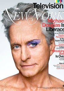 La categoria "Entertainment & Celebrity" regasim un alt actor celebru intr-o ipostaza neobisnuita. Este vorba despre Michael Douglas, in varsta de 69 de ani, care a aparut machiat pe coperta revistei New York din luna mai a anului trecut. Aceasta coperta facea referire la filmul "Behind the Candelabra" in care Michael Douglas l-a interpretat pe Liberance, cel mai bine platit artist american din anii ‘50-'70, despre care actorul a declarat: "Am fost fata acestui film. Sa imi faca machiajul si parul dura mai mult de doua ore si jumatate".