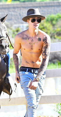 Se pare ca Justin este extrem de mandru de noul sau fizic, fiind vazut tot mai des la bustul gol. Recent, el a renuntat la bluza in timp ce se afla la o sedinta de echitatie, spre deliciul fanelor si al paparazzilor care ii urmareau fiecare miscare.