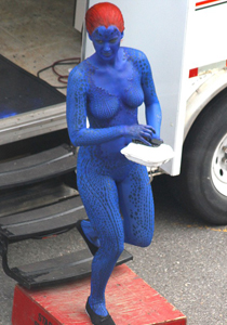 Pentru a interpreta acest personaj, Jennifer a fost nevoita sa renunte la haine si sa lase expertii in body painting sa-i acopere formele doar cu un strat de vopsea albastra. Niciun alt costum nu ar fi putut sa-i redea cu mai multa exactitate corpul, dar actrita nu pare sa fie deranjata de aceasta noua provocare din cariera ei actoriceasca.