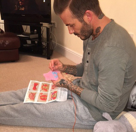 David Beckham (40 ani) este renumit pentru abilitatea sa de a dribla ca niciun alt fotbalist, dar acum isi poate adauga o noua abilitate in palmares – brodatul! Dupa ce si-a facut un tatuaj de dragul lui Harper, fiica sa in varsta de 4 ani, David a cucerit din nou Internetul in ipostaza de tatic devotat. De aceasta data insa, el a fost surprins intr-un moment plin de candoare, in timp ce broda o rochie pentru papusile fiicei sale.