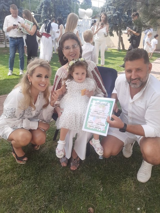 „Dragii mei, astăzi am avut cele mai mari emoții, așa cum aveam la serbările de final de an școlar la Irinuca și Ciprian! Astăzi am avut emoții și lacrimi de bucurie în calitate de bunică! Prima serbare din viața nepoțelei mele dragi, prima diplomă primită dintr-un lung șir care vor urma...