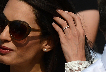 In ceea ce priveste verighetele celebrului cuplu, se zvoneste doar ca ar fi din platina. In timp ce George a optat pentru un model simplu, Amal a ales o verigheta mult mai subtire, aceasta fiind incrustata cu pietre pretioase.