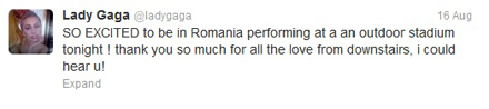 Astfel, Gaga nu s-a rezumat la a-si respecta obligatiile contractuale, ci a incercat sa le ofere fanilor de pe Facebook, Twitter si Youtube, o perspectiva mai ampla, personala, asupra oraselor vizitate, pe care Gaga o numeste MonsterVision. Capitala noastra a beneficiat, se pare, doar de critici favorabile, care ne-au amintit de fenomenul Bon Jovi. Luna trecuta, la un an de la concertul sustinut in Romania, trupa a ales, pentru profilul de Facebook, un cover photo inedit pentru noi: un cadru surprins in timpul show-ului.