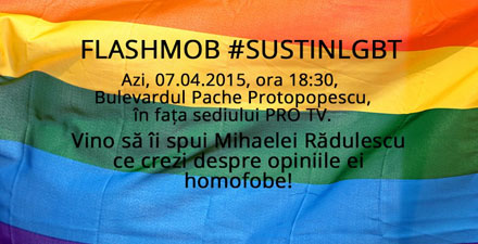 Insa mesajul Mihaelei nu a facut decat sa inrautateasca situatia, ieri avand loc si un flashmob, in fata sediului ProTv, in care romanii au fost invitati sa spuna ce parere au "despre opiniile ei homofobe".
