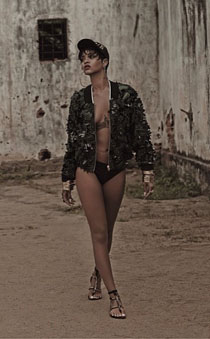 Ea si-a dezgolit complet sanii pe plaja braziliana Ilha Grande, dupa care a pozat cu nonsalanta intr-un cartier marginas din Rio de Janerio. Imbracata doar intr-o pereche de bikini si acoperindu-si ocazional bustul cu o jacheta sport, sau purtand cele mai glam tinute, Riri s-a plimbat pe aleile zonei abandonate lasandu-se imortalizata in cele mai sexy ipostaze.