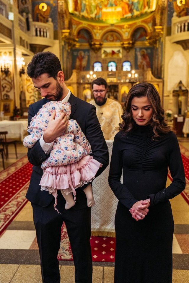 În fotografiile publicate, nașa Theo Rose apare vizibil emoționată, ținând în brațe fetița botezată. Atât ea, cât și partenerul ei, regizorul Anghel Damian, au fost surprinși în ipostaze sincere, departe de rigiditatea evenimentelor formale.