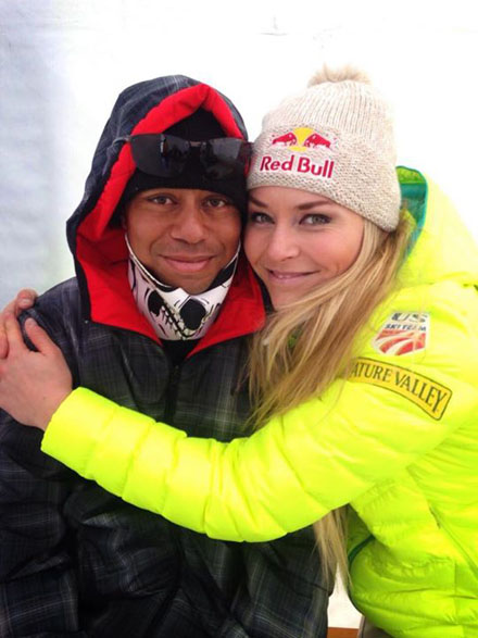 Insa atentia fotografilor a fost rapid distrasa de la momentul de glorie al lui Lindsey, care a reusit sa doboare un record mentinut timp de 35 de ani in istoria schiului alpin, catre Tiger Woods. Jucatorul de golf si-a scos la un moment dat bandana pentru a-i zambi iubitei lui, cu care are o relatie de mai bine de doi ani, moment in care toti cei prezenti au putut observa ca lui Tiger ii lipsea dintele din fata.