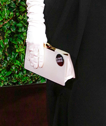 Spre exemplu, Ama si George Clooney au purtat insigne pe care era inscris mesajul care a facut inconjurul lumii. In timp ce actorul a purtat insigna in piept, Amal a ales sa-si accesorizeze clutch-ul cu ea.